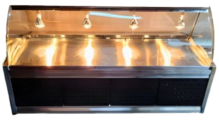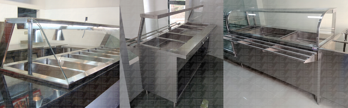 EXHIBIDORES Mesas térmicas vidrio recto Mesas térmicas vidrio curvo Vitrina exhibidora de pollo Vitrinas refrigeradas horizontales Vitrinas secas vidrio curvo Vitrinas secas vidrio recto